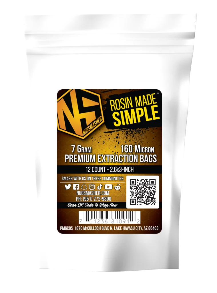 Extraction bags play a significant role in rosin extraction as they act as a filter to separate unwanted plant material from the desired cannabinoid oils.These extraction bags give users one important tool to ensure consistent extractions – Surface Area. NugSmasher Extraction Bags are recommended for optimal yielding, clean – quality rosin. We have our bags broken down into four different bag sizes – as well as four different micron sizes for each bag size.